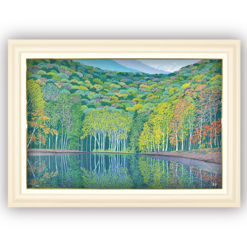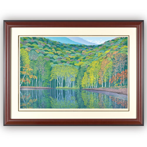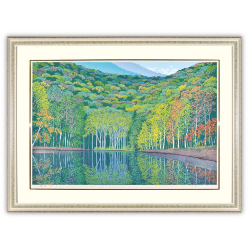 作品No: 681 きょうりん 制作: 2025年 限定枚数: 280枚 / 29版32色 画 寸: 60.6×90.9cm 額外寸: 77.9×108.2cm 青森県 / 十和田市奥瀬 蔦七沼 長沼