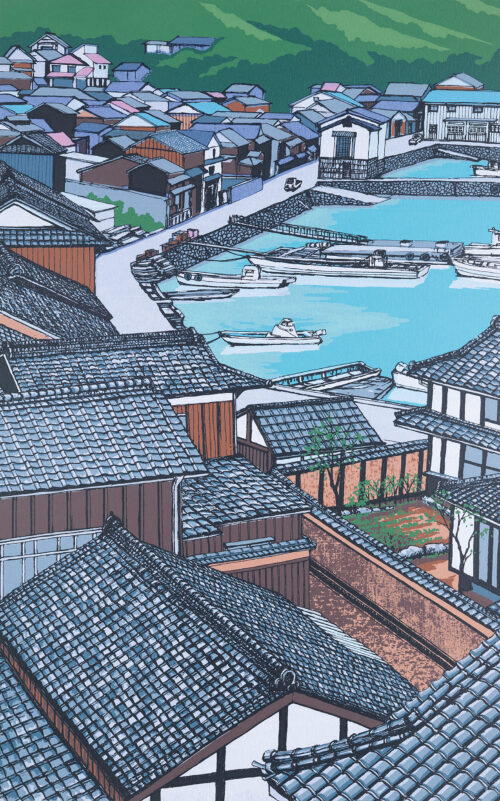 作品No: 443 あさなぎのぎょこう 制作: 2006年 限定枚数: 200枚 / 18版18色 画 寸: 53.0×33.3cm 額外寸: 69.0×49.5cm 岡山県 / 笠岡市真鍋島