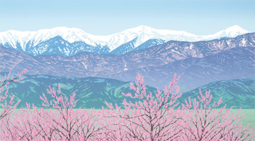 作品No: 424 ゆうか しらねさんざん 制作: 2005年 限定枚数: 200枚 / 18版28色 画 寸: 36.0×65.0cm 額外寸: 53.0×82.0cm 山梨県 / 甲府