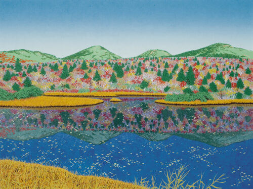 作品No: 436 きんえい はっこうださん 制作: 2006年 限定枚数: 280枚 / 19版22色 画 寸: 45.5×60.6cm 額外寸: 61.5×76.5cm 青森県 / 青森市睡蓮沼