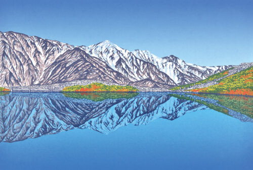 作品No: 562 てんくうのその はっぽういけ 制作: 2016年 限定枚数: 280枚 / 13版15色 画 寸: 40.9×60.6cm 額外寸: 68.0×87.0cm 長野県 / 北安曇郡白馬村