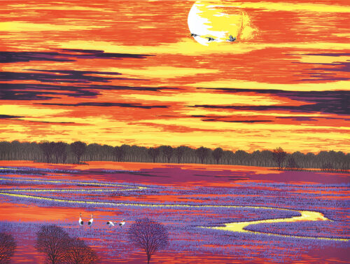作品No: 566 ぎょうせん 制作: 2016年 限定枚数: 280枚 / 16版16色 画 寸: 45.5×60.6cm 額外寸: 72.0×86.5cm 北海道 / 釧路湿原